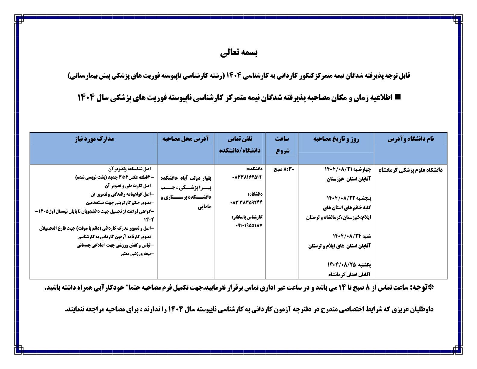 اخبار اطلاعیه زمان و مکان مصاحبه پذیرفته شدگان نیمه متمرکز کارشناسی ناپیوسته فوریت های پزشکی سال 1404 ۱۹ مهر ۱۴۰۴ ۰۹:۵۴ نظرات بینندگان میانگین امتیاز کاربران: 0.0 (0 رای) 12345 امتیاز 12345 برای امتیاز باید عدد وارد کنید نام را وارد کنید ایمیل صحیح نیست ایمیل نمایش داده شود. تعداد کاراکتر باقیمانده: 500 نظر خود را وارد کنید بازخوانی بازخوانی پس از انتشار این نظر، به من اطلاع داده شود. ارسال